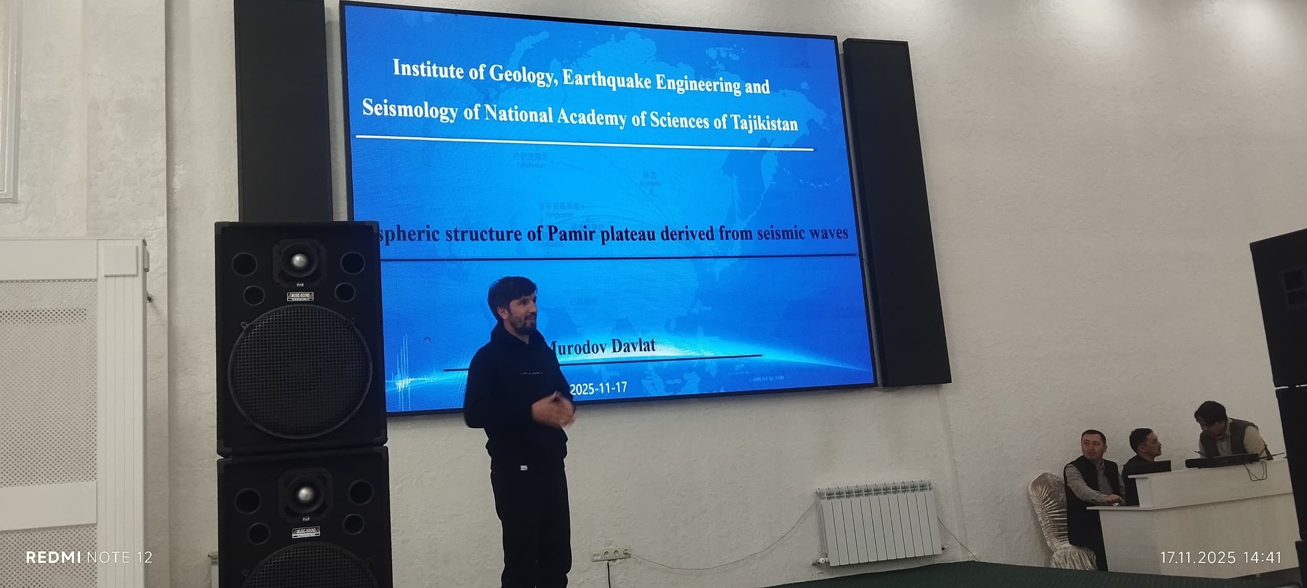 Инчунин дар давоми семинар Файзуллоев Ш.А. дар мавзуи “Landslide susceptibility of Tajikistan territory” ва Муродов Д. “The relationship between the seismic activity of Tajikistan and the tectonic structures of the Pamir and Tibetan plateau” (расмҳои 3 ва 4) суханронӣ карданд.